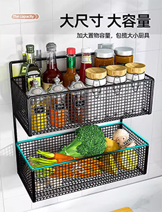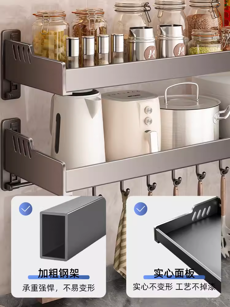 枪灰厨房置物架免打孔壁挂调料架加宽调味品