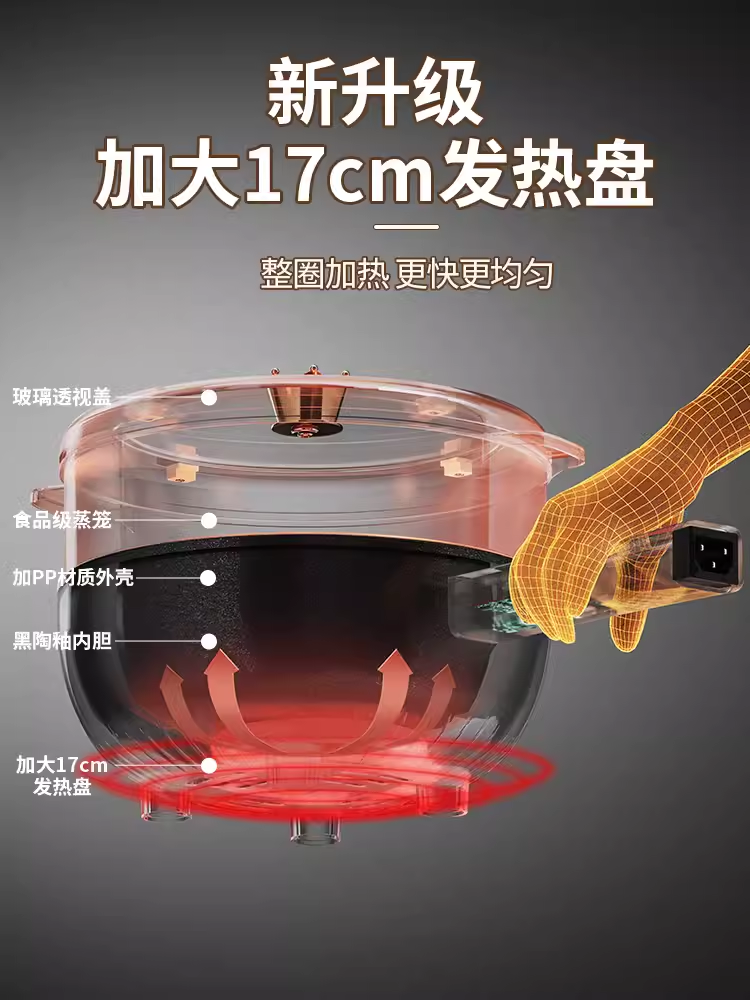 电煮锅多功能家用电火锅学生宿舍煮面小电锅