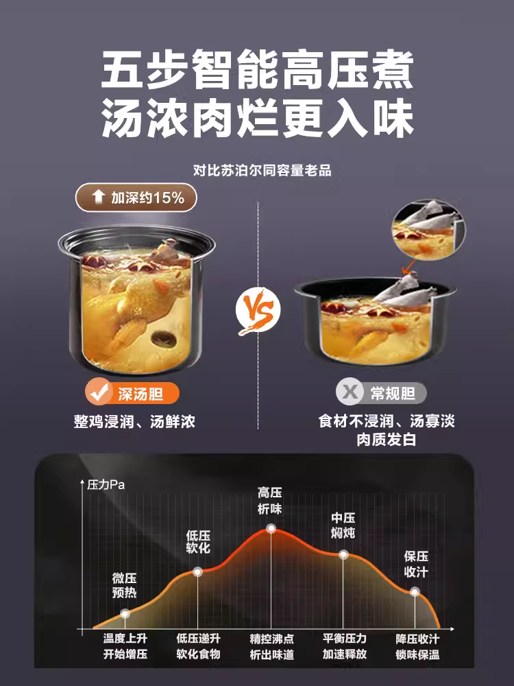电压力锅家用5L多功能智能电饭煲高压锅一体