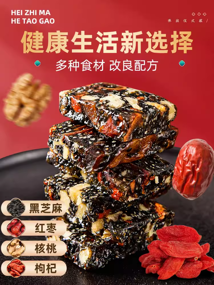 黑芝麻红枣核桃软糕500g芝麻饼酥老式切健康糕点